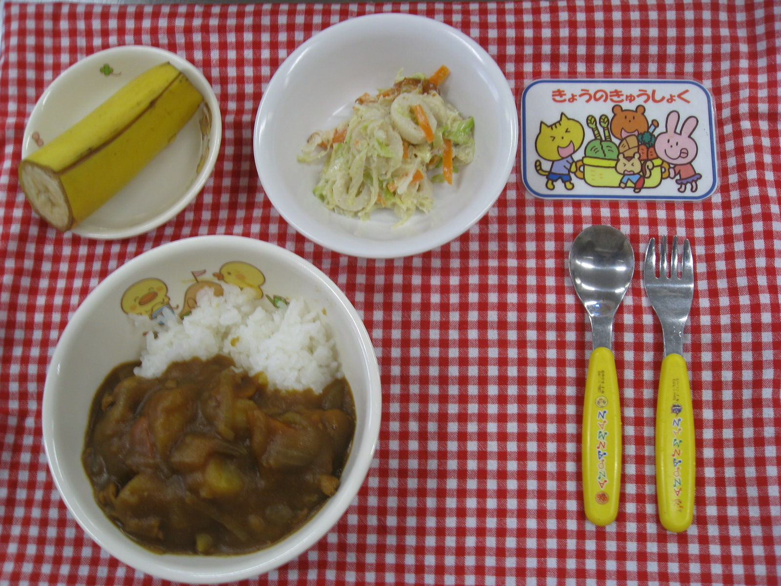キャベツの胡麻マヨネーズあえ、バナナ🍌🍌🍌でした
