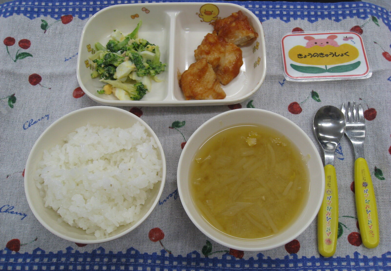 2025年12月15日 / 最終更新日時 : 2025年12月15日 共通 今日の給食 🍴今日の給食🍴*今日の給食* 御飯、みそ汁(もやし・コーン) チキンチャップ、ブロッコリーのたまごサラダ🥦🥚🥦でした