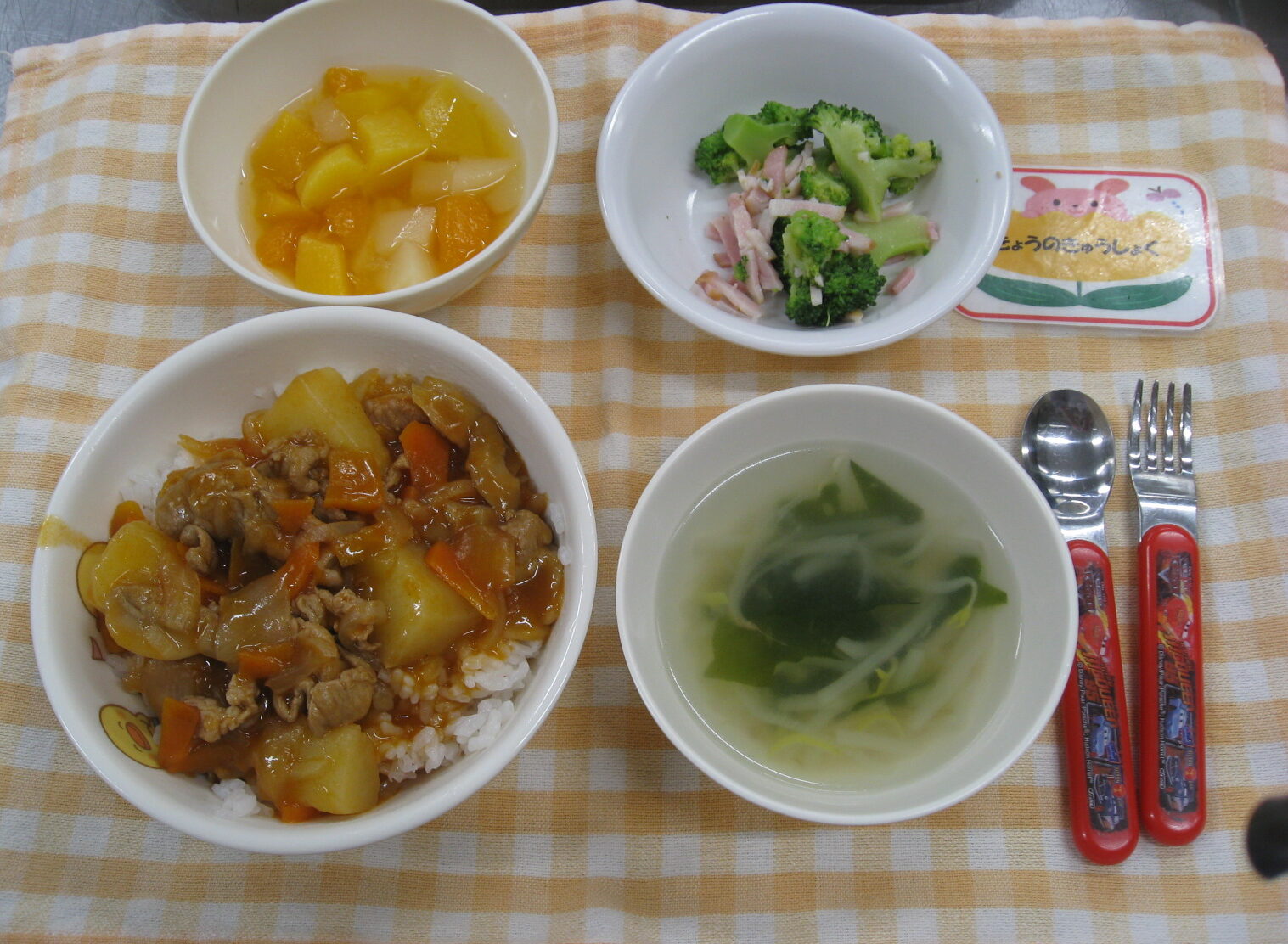 ブロッコリーソテー、もも・みかん缶も🍊🍊🍊でした